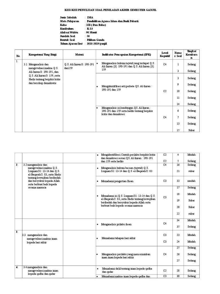 Soal Uts Pai Kls 12 Smk Semester 1 Doc / Contoh Soal Hots Pai Sma Kelas Xii | Sobat Guru - Berikut dibawah ini, soal pg agama islam kelas xii semester genap dan kunci jawaban untuk siswa sma/smk, dimulai dari pertanyaan nomor 36.. Yaumul qiyamah disebut juga yaumul mizan yang artinya … Assalammualaikum adik adik yang baik, nah pada kesempatan kali ini kakak ingin memebagikan beberapa contoh soal uts pai untuk semester genap yang . Soal uas pai kelas xii smk dan kunci jawaban. Periksa kembali pekerjaanmu sebelum diserahkan pada pengawas. Pada artikel kali ini saya akan menshare mengenai soal untuk ujian, baik itu digunakan untuk ujian tengah semester maupun ujian akhir semerter, .